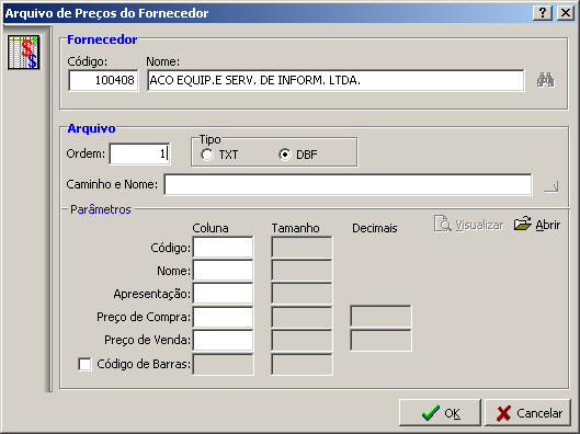 fornecido pelo Fornecedor, arquivo texto TXT ou um arquivo DBF.