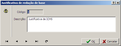 Descrição da Justificativa de ICMS.