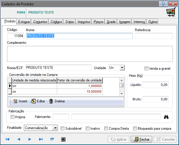 Preço Normal: Este campo refere-se ao Preço de Venda, sem desconto e será usado nas transações onde não houverem incidência de desconto sobre este produto.