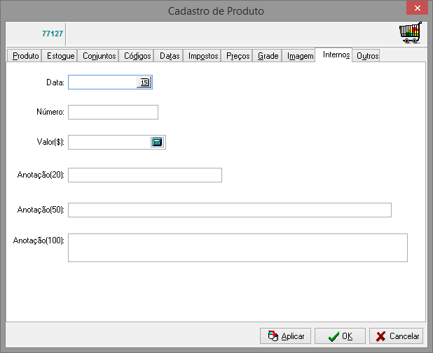 Data: Qualquer data que o usuário tenha necessidade de registrar para o produto;