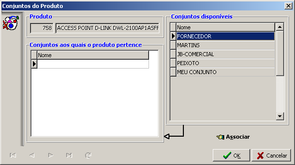 Nesta interface, o usuário poderá associar o produto em foco aos conjuntos.