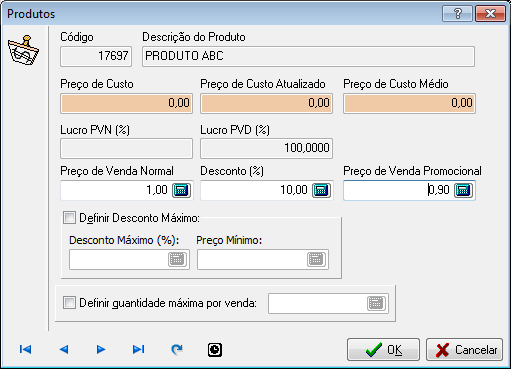Os Preços de Venda Normal, Desconto e Preço de Venda Promocional,