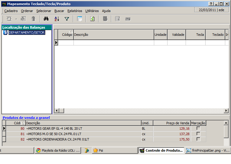 teclados para cada produto, data de validade, que serão exportados para o SAB