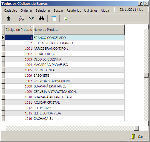 Nesta interface o usuário terá acesso, de forma rápida, à todos os códigos de barras cadastrados para todos os produtos.