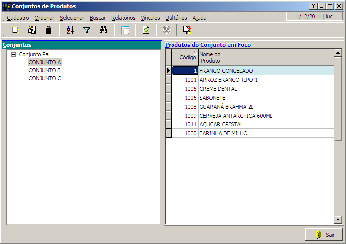 Nesta interface, teremos acesso aos conjuntos e seus produtos associados,