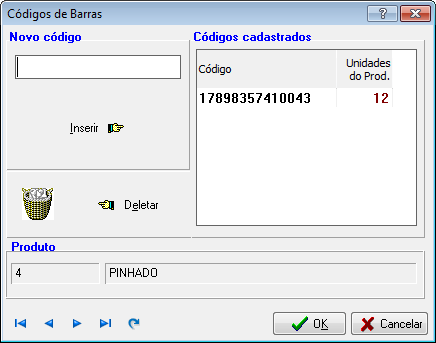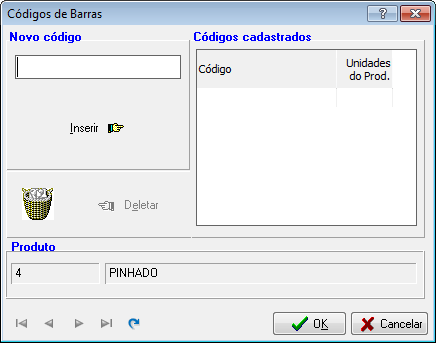 Nesta interface pode-se incluir ou excluir um código de barras de um produto.