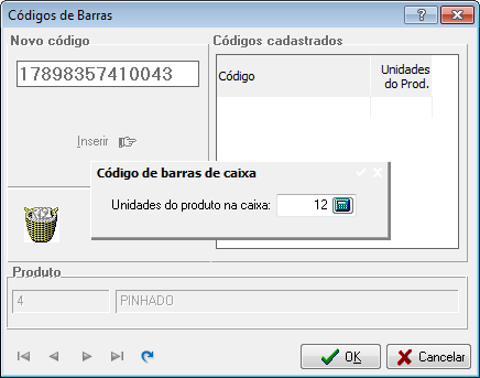 O Thotau também permite cadastrar códigos de barras de caixas de produto (ou outra unidade logística).