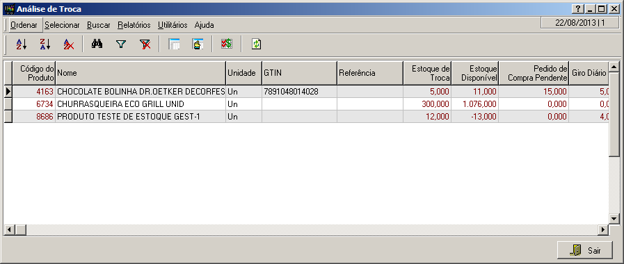 Nesta interface serão exibidos os produtos que tem estoques de troca.