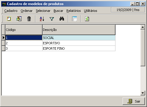 Interface de visualização e controle de informações sobre modelos de produtos que serão utilizadas para configuração de grades.