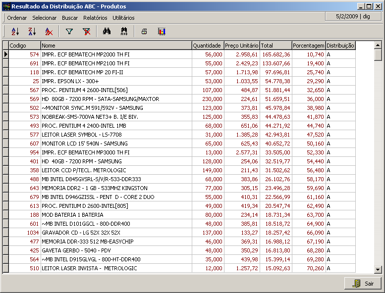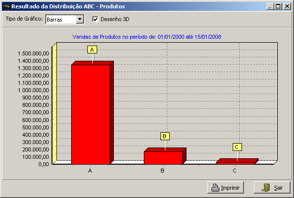 Nesta interface, o usuário terá o resultado da Distribuição ABC das vendas