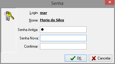 Alteração de Senha: Inicialmente a interface se encontra reduzida, porém quando é digitado o campo Senha Antiga, se a mesma for correta para o usuário, a interface irá se expandir exibindo os campos para alteração da senha.
