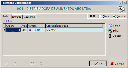Interface que permite visualizar os telefones cadastrados no sistema da pessoa/empresa selecionada.