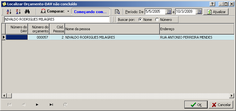 - Listar DAV-Orçamentos não concluídos, emitidos pelo módulo Sistema