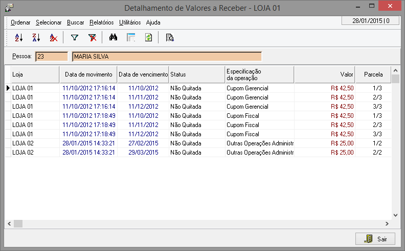 Detalhamento de Valores a Receber