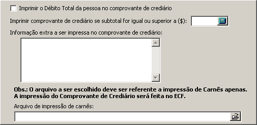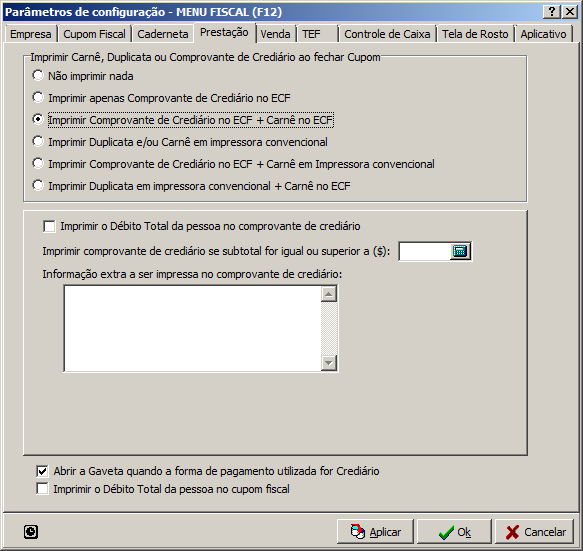 Configurações relacionadas ao crediário Prestação, direcionadas para estabelecimentos comerciais que utilizam o tipo de fechamento Loja.