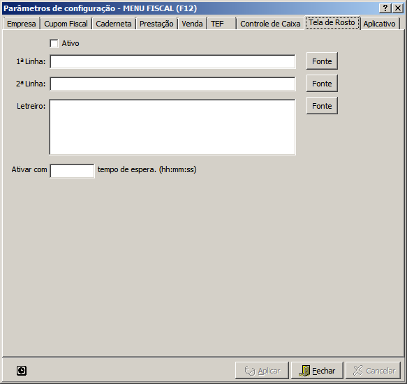Parâmetros de Configuração do Caixa