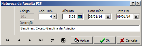 Observação: As datas de início e fim e alíquota não são utilizadas para controle no Thotau.