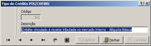 Tipo Crédito PIS/COFINS