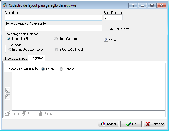 Separação de campos: Indica o modo de separação dos campos do layout.