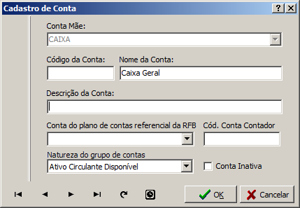 - Conta Mãe: É a conta que estava em foco ao clicar em inserir nova conta.