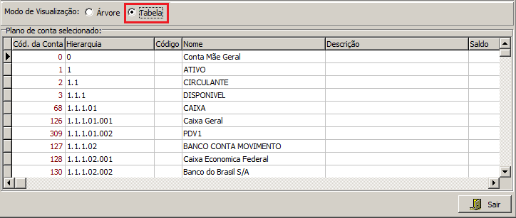 Esta interface exibe os planos de contas cadastrados no sistema.