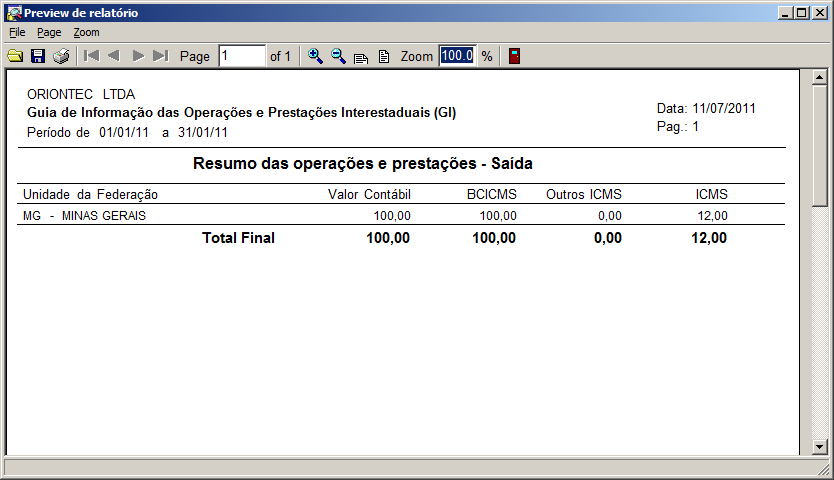 Guia de Informação das Operações e Prestações Interestaduais (GI), das movimentações de Saídas
