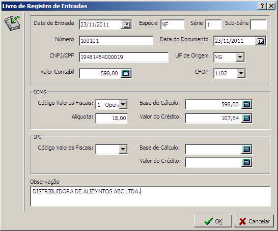 Esta interface permite inserir um registro no livro de entradas ou editar um registro existente.