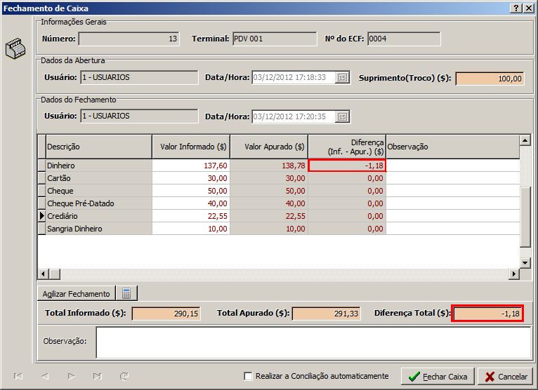 Fechamento de Caixa