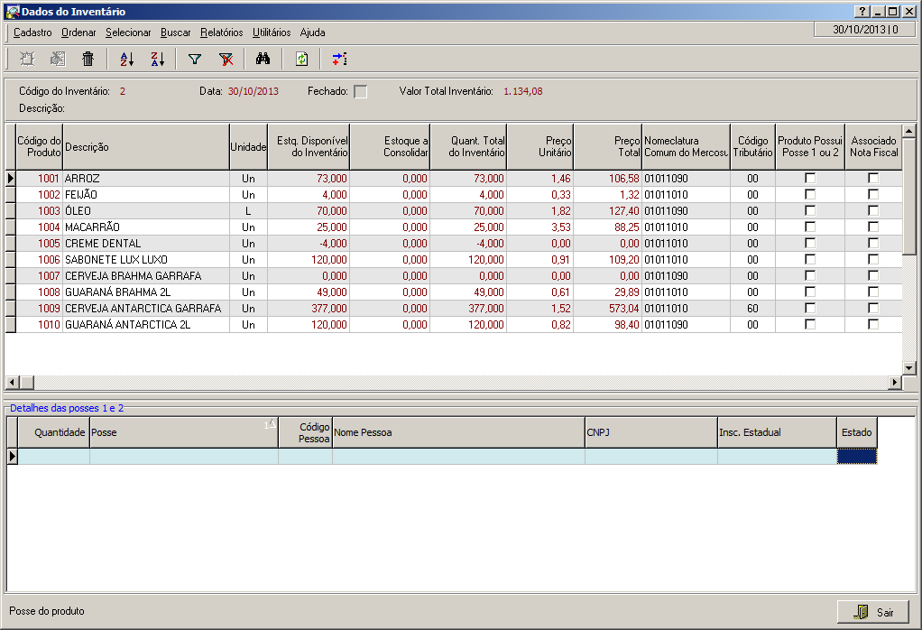 Para fazer um inventário completo siga as instruções no link “Como
