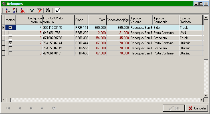 Interface que permite a seleção de até 3 veículos do tipo REBOQUE.