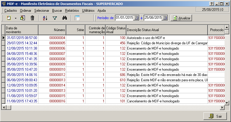 A interface abaixo servirá para emissão e gerenciamento dos MDF-e's.
