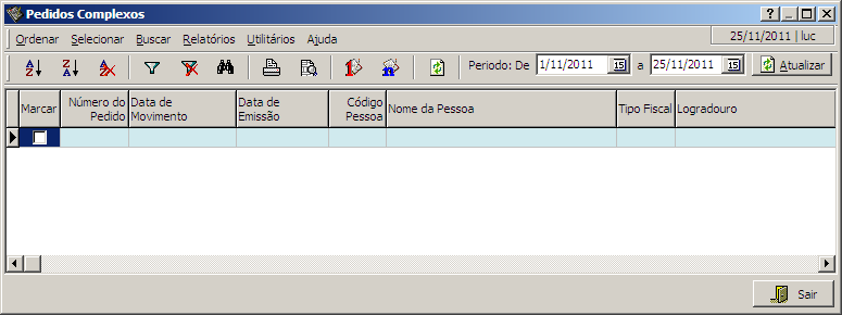 Nesta interface o usuário pode marcar os pedidos dos quais deseja gerar a nota fiscal correspondente.