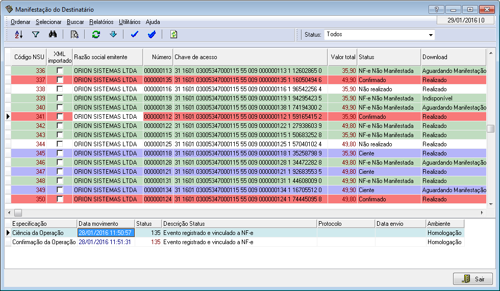 Obs. Operações cancelas ou desconhecidas não permitem o download do XML