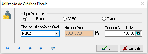 Quando o Tipo de documento for Nota Fiscal ou Conhecimento
