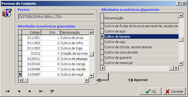 Interface que permite associar as atividades econômicas a uma pessoa.