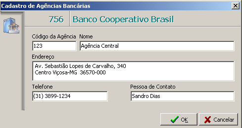Nesta interface é possível inserir dados de uma nova agência ou alterar os dados de alguma já cadastrada.