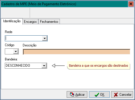 Esta interface você deverá associar uma Rede (VisaNet, RedeCard, Amex, etc), um MPE, e uma Bandeira: