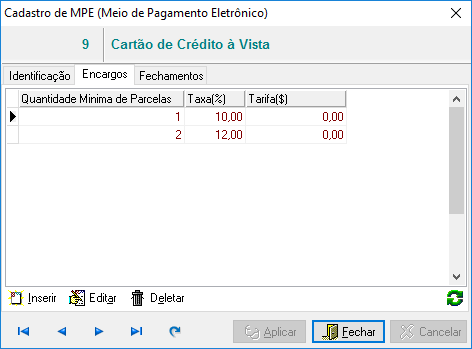 Se a rede cobrar mais de uma tarifa ou taxa de acordo com o numero de parcelas, adicione todas a tabela.