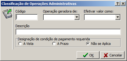 Nesta interface são feitos os preenchimentos dos campos durante a criação de uma nova classificação de operação administrativa ou a alteração