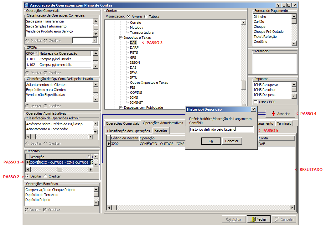 Associação de Operações com o Plano de Contas