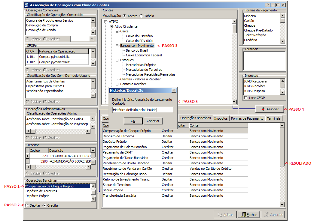 Associar Operações Bancárias com o Plano de Contas