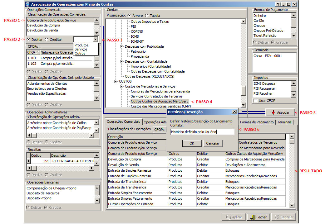 Associação de Operações com o Plano de Contas