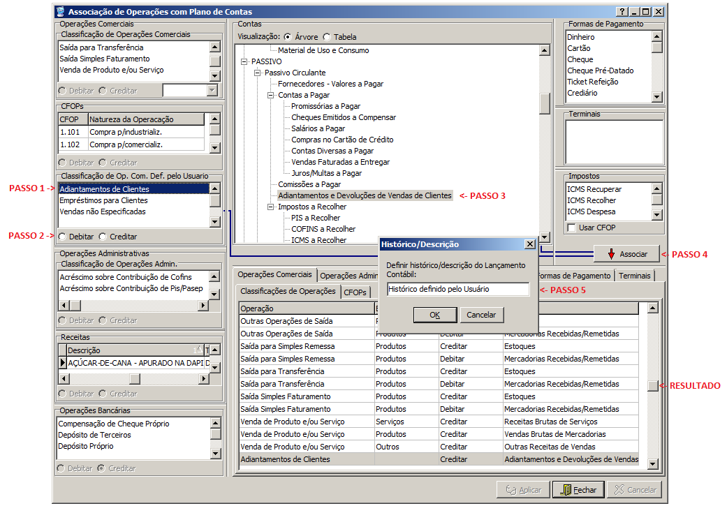 Associação de Operações com o Plano de Contas