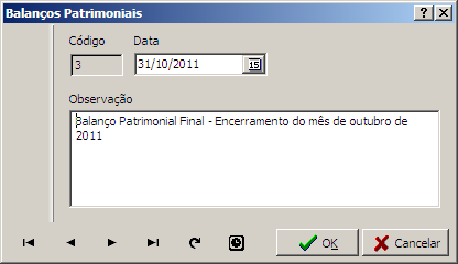 Nesta interface é possível inserir dados de um novo balanço patrimonial ou alterar os dados de algum já cadastrado.