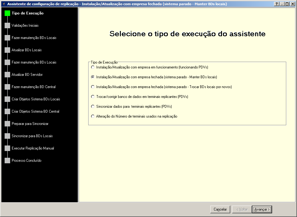 Assistente de configuração de replicação - Instalação/Atualização com empresa fechada (sistema parado - Manter BDs Locais)