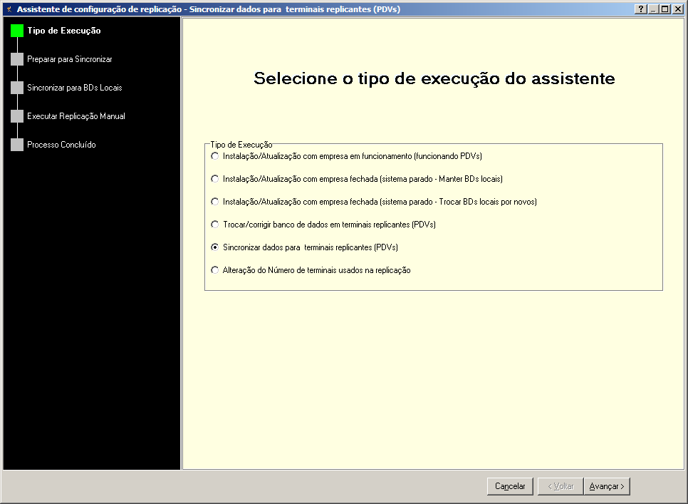 Assistente de configuração de replicação - Sincronizar dados para terminais replicantes (PDVs)