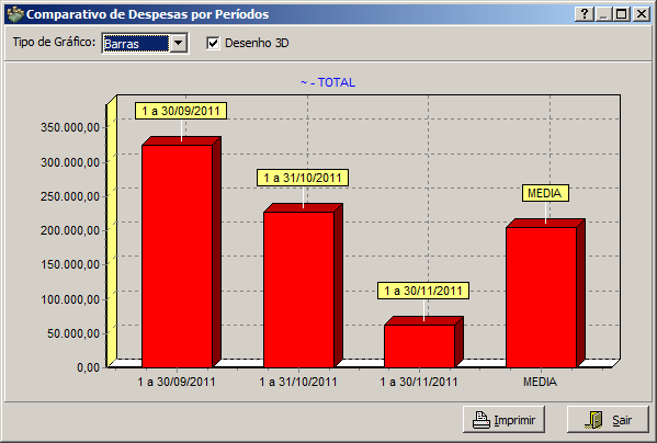 É possível ainda visualizar o comparativo das despesas num gráfico, para isto basta clicar no botão correspondente na barra de botões.