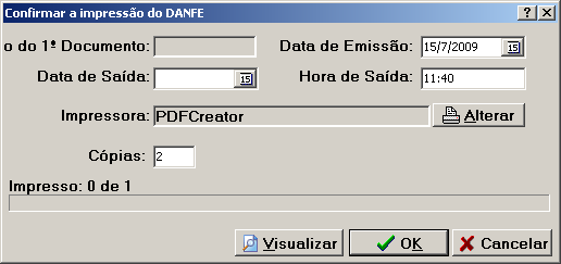 Note que a interface já vem com o número de cópias igual a 2. Isso porque, a legislação exige que para impressão do DANFE em Formulário de Segurança sejam impressas pelo menos duas cópias, sendo uma das vias permitirá o trânsito das mercadorias e deverá ser mantida em arquivo pelo destinatário pelo prazo estabelecido na legislação tributária para a guarda de documentos fiscais, e a outra via deverá ser mantida em arquivo pelo emitente pelo prazo estabelecido na legislação tributária para a guarda dos documentos fiscais.