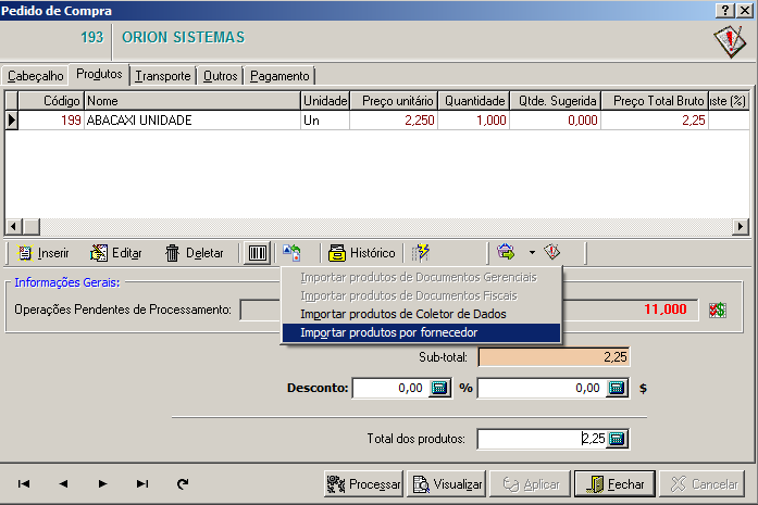 tela. Ao importar produtos para o pedido, através de Sugerir Produtos,