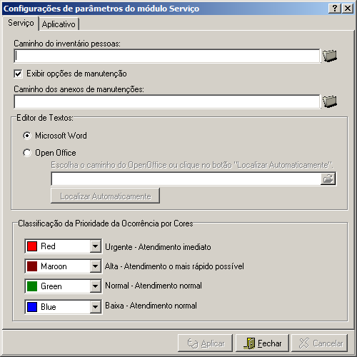 Nesta interface, o usuário terá acesso aos parâmetros de configurações do módulo Serviço.